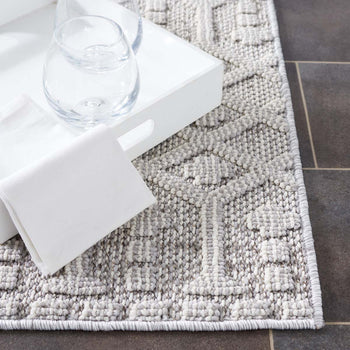 Footrest Height Boho-chic style goes indoor-outdoor with the all-weather rugs of the Global Collection. Evocative motifs are displayed in subtle raised-textures and colored in warm