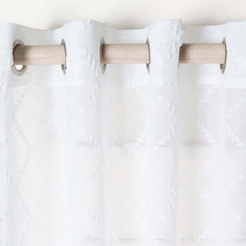 Posh and polished, these semi sheer drapes add character and charm to any Decor. Designed with a classic white tone on tone trellis pattern, they feature 8 grommet rings per panel. Their flowing polyester fabric offers privacy and soft filtered light.