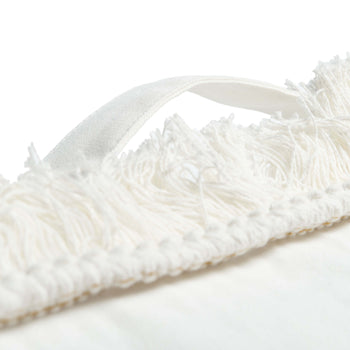 This beautifully boho yet playfully posh Grema Floor Pillow is the ideal extra seat for your next cozy get-together or coffee table gathering. Featuring layered rows of braided fringe, Grema creates a lavish look in any room, and its ivory cotton is delightfully soft to the touch.