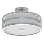 A modern double drum shade fixture, the Greta Veil Ceiling Light uniquely pairs a white etched glass inner shade with an outer shell of meshed steel in an antique gold finish.?Greta casts an elegant glow in any room it inhabits.