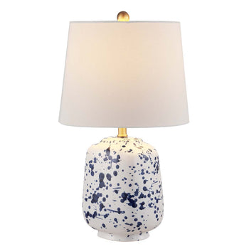 Give your Decor a touch of contemporary whimsy with this Greyon Table Lamp. Modern art is given a subtle yet glamorous treatment with Greyon's gold finished neck and finial, while its navy blue and white ceramic brings a spark of color to any room.