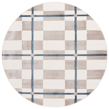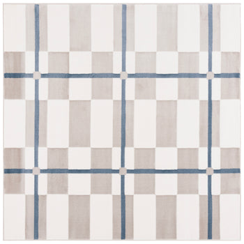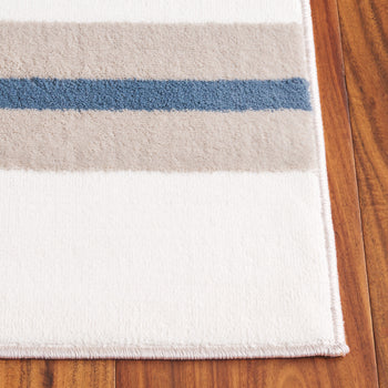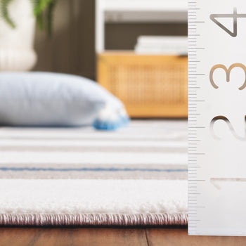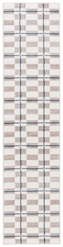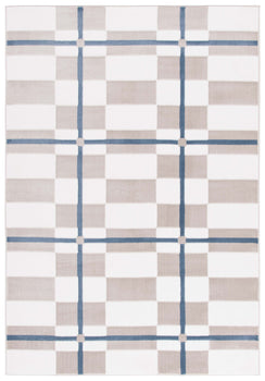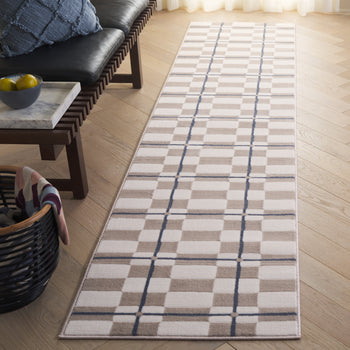 Elevate your living space with this sophisticated Ivory/Blue Runner Rug, a perfect fusion of modern style and timeless elegance. Boasting a crisp geometric pattern that seamlessly blends creamy ivory blocks with bold blue lines, this rug creates an eye-catching aesthetic that complements any contemporary decor.