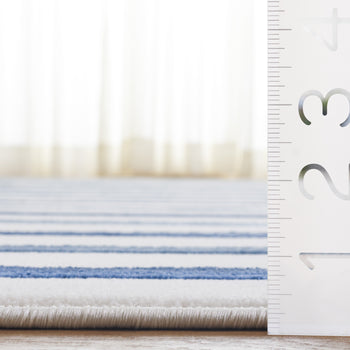 Presenting our luxurious area rug, elegantly crafted with a power-loomed technique, blending style with durability. This exquisite piece features an inviting color palette of ivory and blue, adding a touch of sophistication to any space. Artfully crafted from 75% Polypropylene and 25% Polyester, this rug not only offers delicate aesthetics but also unrivaled durability and strength. With a comfortable height of 3/8", it ensures plush comfort underfoot. Specially brought to you from the skilled craftsmen of Turkey, this area rug is the perfect balance of style and practicality. A timeless add-on for your decor that will maintain its allure for years to come.