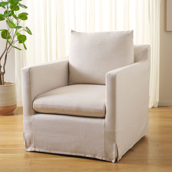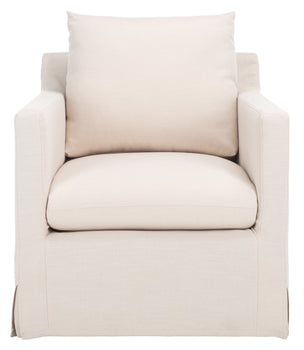 Inspired by the traditional club chair, this Hadara Swivel Accent Chair is a classic-contemporary twist on a timeless favorite. Hadara’s track arms and pleated details never go out of style, and its bone white linen upholstery is ultra-smooth to the touch.