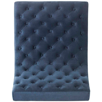 Designed for the lifestyle of the contemporary jetsetter, this tufted sofa chair brings modern luxury to the cosmopolitan residence. The sleek angles of polished silver metal legs are paired with plush upholstery in a sumptuous hue.