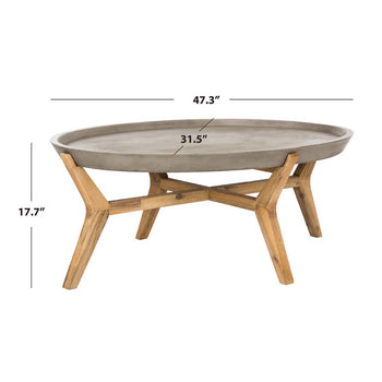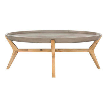 Inspired by the iconic furnishings in Spain's top design gallery, this concrete oval indoor outdoor coffee table is an investment. Crafted with acacia wood, its natural finish and dark grey top instantly upgrade any living room or outdoor space.