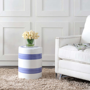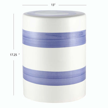 Exemplifying the brilliance of simplicity, the Hael Garden Stool adds modern art flair to outdoor entertaining. Blue brushstrokes over clean white ceramic lend a painterly aspect to this stylish accessory. The perfect finishing touch on the deck or patio.