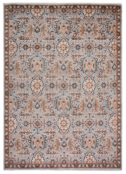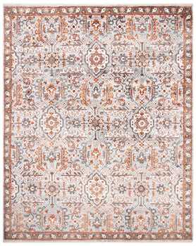 Our area rug is meticulously constructed with a blend of 77% Viscose, 15% Cotton, and 8% Wool, offering a soft touch and a subtle sheen that catches the light, enhancing the intricate patterns and detailed motifs inspired by the image provided.