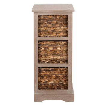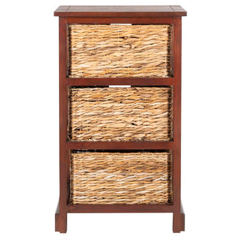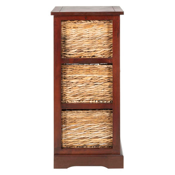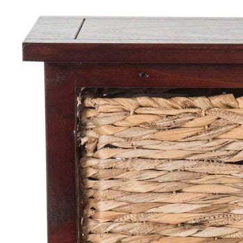 Bring rustic charm to your Decor with this Halle Side Table. Three wicker baskets provide ample storage and pair beautifully with a pine wood frame in a rich cherry finish, making Halle a must have in any farmhouse style interior.