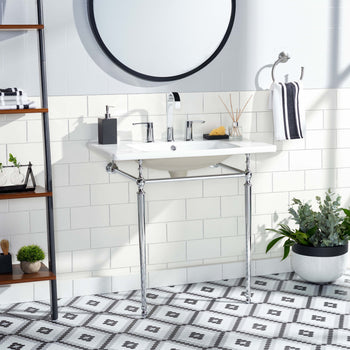 A sleek modern take on classic Edwardian designs, this Hamilton Sink Console is effortlessly elegant. Hamilton's polished chrome frame beautifully updates its timeless ball feet and gently turned accents, making it a must-have for today's high-style bathrooms.