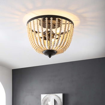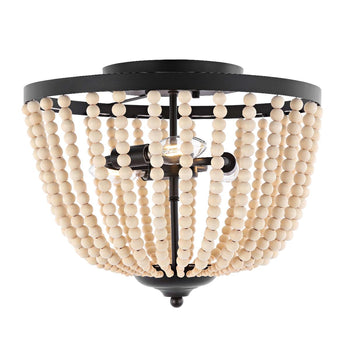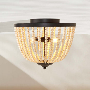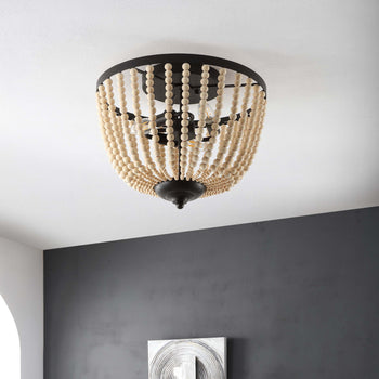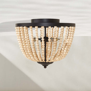 Ideal for enhancing the visual intrigue of any contemporary interior, this Hamlin Flush Mount is unmistakably chic. Hamlin's dome-style shade is formed by cascading strands of natural wood beads that create a remarkable interplay of light and shadow, its painted bronze details elevating its further aesthetic prowess.