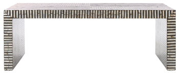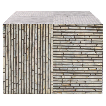 Introducing the Hamza Rectangle Coffee Table - a statement piece that effortlessly brings a touch of class to any living space. Designed with an elegant black hue, it's the perfect complement to your refined style. Its intricate Mother of Pearl inlays make it a unique, eye-catching masterpiece, emanating delicate charm while maintaining an impressive sense of robustness. Its rectangular shape provides ample surface for your favorite coffee table books or to serve drinks when you have guests. Indulge in the luxuriant aesthetic of the Hamza Rectangle Coffee Table in Black and let your space reflect your sophistication!
