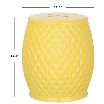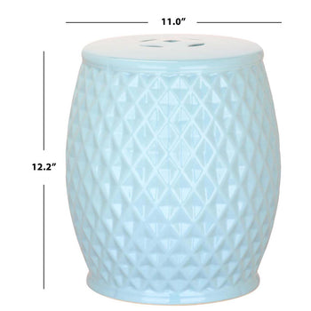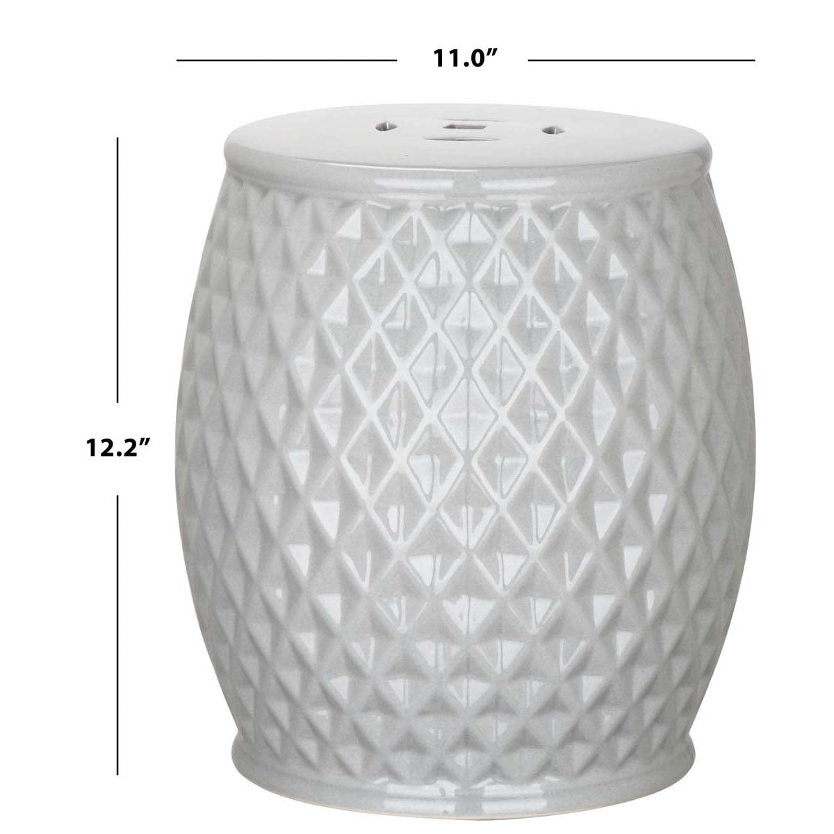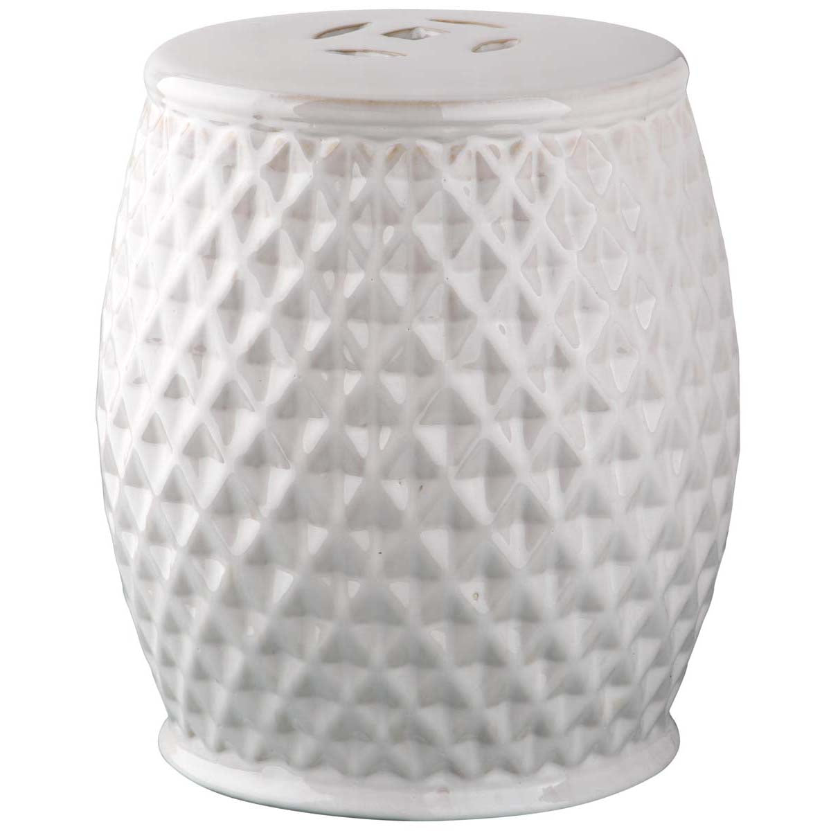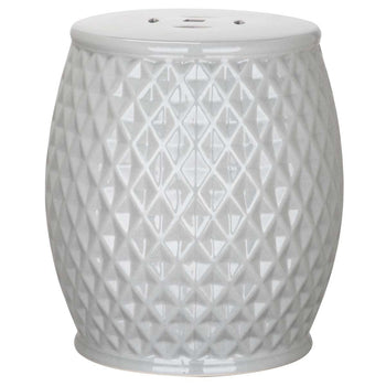 Cute as a button, the Harlequin kid's indoor outdoor garden stool makes playing house more glamorous than ever before. Crafted of high fired ceramic with textured harlequin diamond motif, it doubles as a side table or seat in backyard or bedroom.