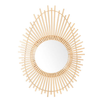 The organic intrigue of art nouveau design inspired the dramatic style of the Harson Mirror. Twisted spires reach from the circle mirror of Hasson, adding extravagant glamour to home Decor. An alluring focal point for any living room, boudoir, or grand entryway.