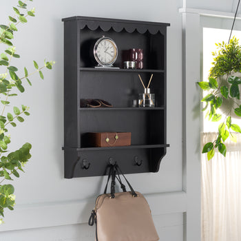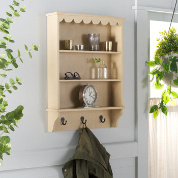 Introducing the perfect blend of style and function for your space. This wall rack brings simplicity and utility to any room. Elegantly designed with sleek shelves for books and decor, it also features sturdy coat hooks to keep your essentials organized. Whether in the entryway or bedroom, this piece enhances your decor while offering versatile storage solutions. Transform your home with the warmth and charm of wood. Get organized and elevate your style with this all-in-one wall rack today.
