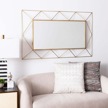 This chic Heath Mirror surrounds your reflection with the delicacy and grandeur of a decorative picture frame. Artistic and stylish, Heath's airy border is crafted of slim iron spokes in a brass finish to perfectly complement any room's color palette.