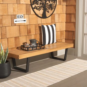 Step up your outdoor seating game with the decidedly chic Heather 60" Bench Outdoor. This stunning piece of furniture combines the rustic, weatherresistant strength of Acacia wood with the modern metropolitan charm of steel. Showcasing a refreshing color combination of natural seat and white legs, it effortlessly enhances the curb appeal of your outdoor space.