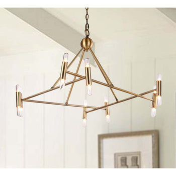 Poised and graceful, this contemporary chandelier updates any living room, dining room or hall with its minimalist style. Beautifully balanced, its sleek metal frame features a polished gold finish that's gently illuminated by its Sputnik style bulbs.