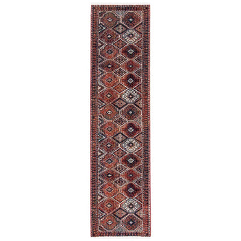 The design showcased in the image is a testament to the rug's rich heritage, displaying a stunning traditional pattern that weaves together geometric and floral motifs. The well-defined shapes and border provide a sense of structure and sophistication, making it the perfect accent for hallways, entryways, or any long, narrow space in need of an artistic touch.