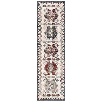 The traditional style of this runner is apparent in its intricate patterns and ornate design elements, showcased in the provided image. Symmetrical geometric motifs and border details are depicted in a harmonious palette of cream and grey with accent hues, making this rug a versatile choice that complements a variety of interior decors.