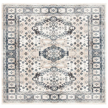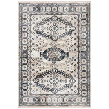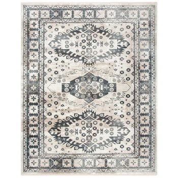 This rug showcases intricate traditional patterns, featuring a harmonious blend of ivory and grey tones that will complement any classic or contemporary interior. The symmetrical design elicits a sense of balance and sophistication, with each motif woven into the rug using a state-of-the-art power-loomed technique.