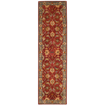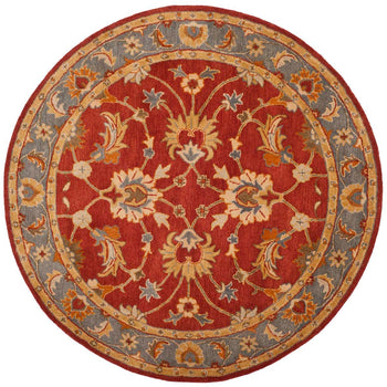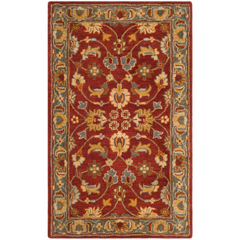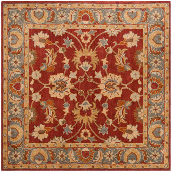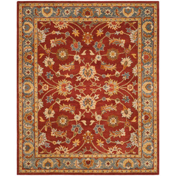 The arresting color palette boldly pairs deep reds with striking blues, creating an inviting and dynamic aesthetic. The traditional pattern depicted in the image you provided speaks volumes of its classic style, with intricate florals and ornate motifs interwoven to form a stunning design that is sure to be the centerpiece of any room.