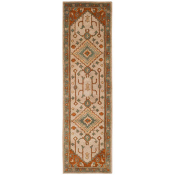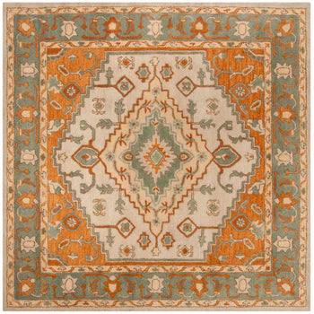 Our rug is a masterpiece of tradition and quality, featuring a harmonious blend of light blue and rust colors that invoke a sense of timeless elegance. The intricate pattern depicted in the image showcases a symmetrical design, rich in cultural heritage, with delicate motifs that capture the essence of classic styling.
