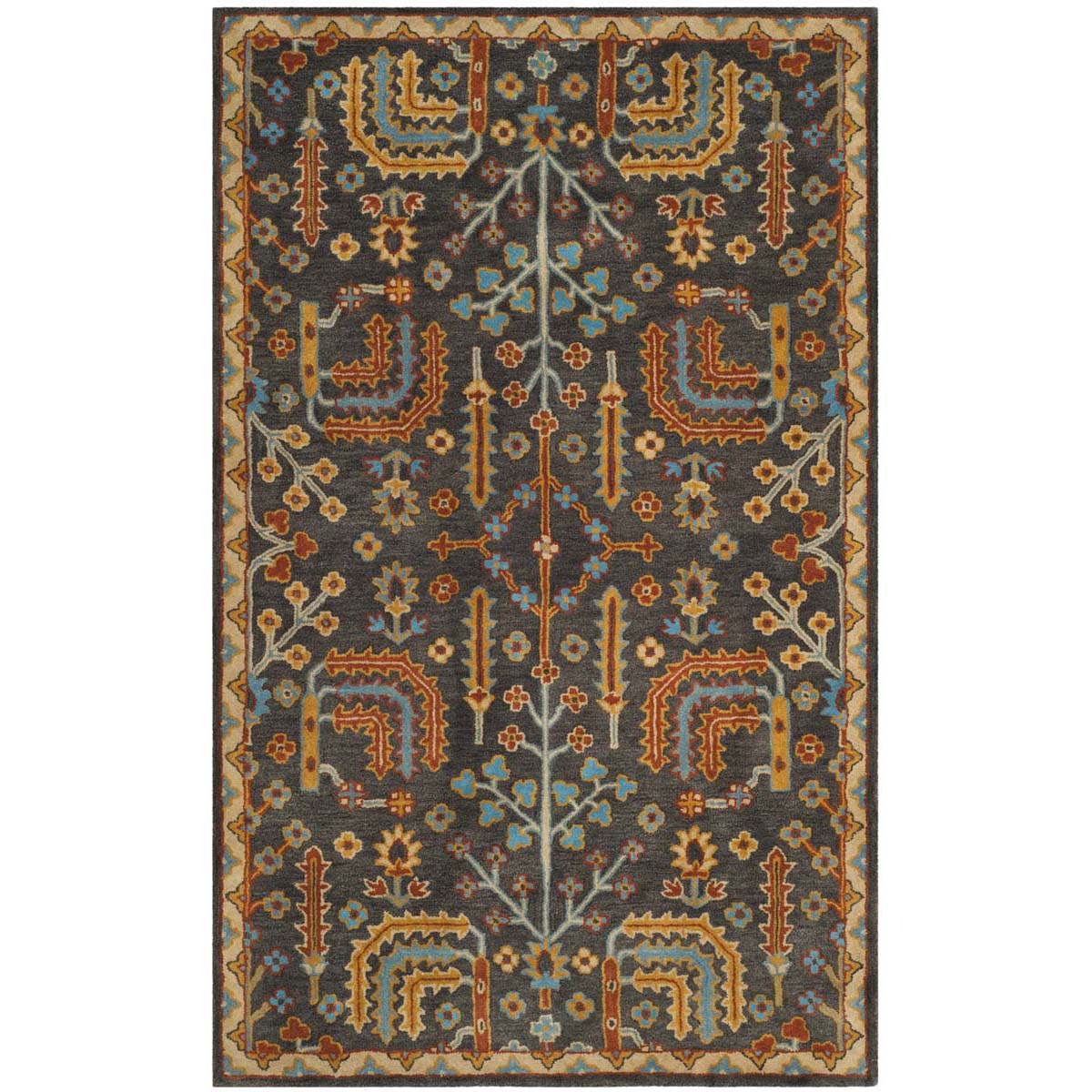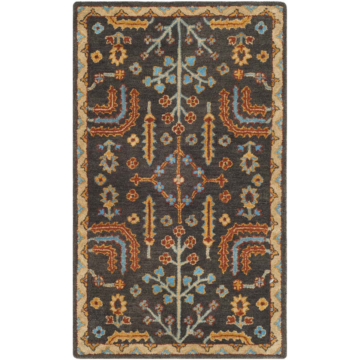 Enhance your living space with this exquisitely crafted 3' X 5' area rug, a small rectangle designed to bring comfort and style into your home. With its rich charcoal and multi-color palette, this rug adds a touch of sophistication and timeless charm to any room.