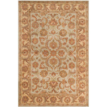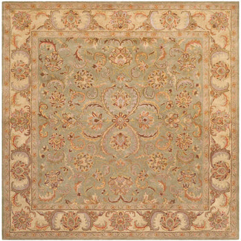 The enchanting green and gold color palette creates a serene and inviting atmosphere, while the intricate pattern is a testament to the rug's artisanal heritage. Each swirl and floral motif is meticulously tufted by hand, ensuring a unique piece rich in detail and quality.