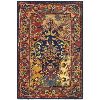 The rug's pattern is a visual feast, showcasing detailed floral elements, geometric shapes, and symmetrical designs that capture the essence of artisanal craftsmanship. Each motif is carefully positioned to present a balanced and harmonious look, ensuring that the rug will be the focal point of any room.
