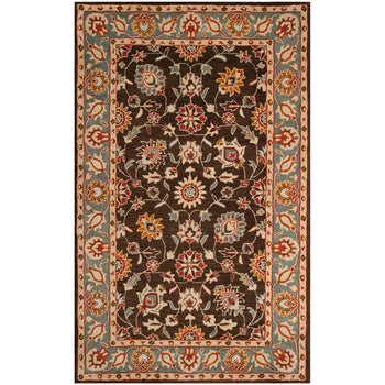 Elevate your living space with the exquisite charm and opulent design of our 3' X 5' hand-tufted wool area rug. Crafted by skilled artisans in India, this rug boasts a rich charcoal base elegantly complemented by intricate blue accents, creating a striking visual harmony reminiscent of traditional motifs and timeless sophistication.