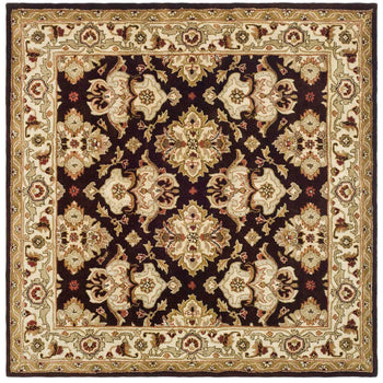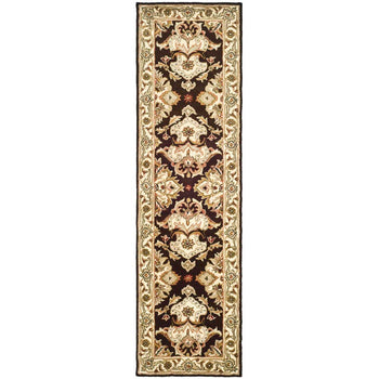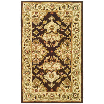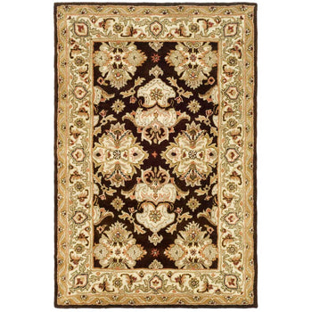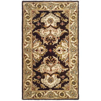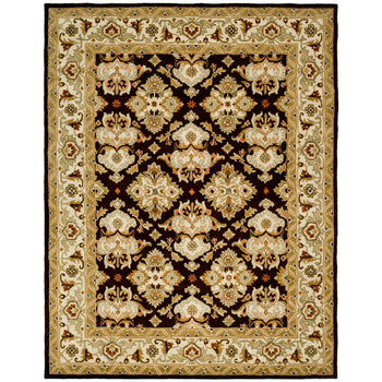 The rug showcases a timeless pattern, featuring intricate details and a harmonious blend of espresso and ivory hues. This timeless design balances both traditional and contemporary decor, making it an excellent addition to any interior aesthetic.