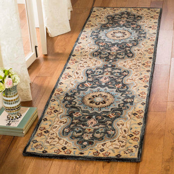 Elevate your home with the timeless sophistication of our hand-tufted runner area rug. Expertly crafted in India, this elegant runner measures 2 feet 3 inches by 8 feet and boasts a plush height of 5/8 inches, providing a sumptuous underfoot experience. The rug?s luxurious blend of materials, composed of 80% wool for warmth and durability, 10% cotton for softness, and 10% latex for resilience, ensures both comfort and longevity.