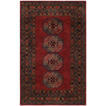 Drawing inspiration from classic design motifs, our runner rug showcases a series of ornamental medallions, intricately detailed and symmetrically aligned against a deep red backdrop, bordered by a tasteful blend of accent colors that complements various interior themes. The meticulous hand-tufted technique ensures each twist and loop of the fibers is placed with precision, creating a dense, soft pile that can withstand the demands of high-traffic areas while maintaining its sophisticated appearance.