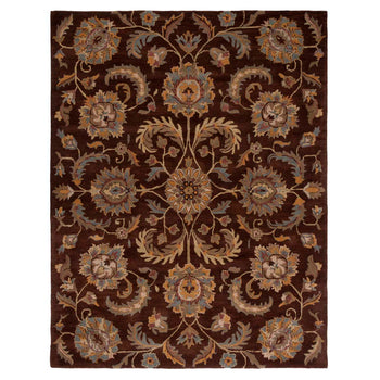 This brown and gold area rug is not merely a floor covering but a statement of taste and an heirloom piece that will be treasured. It's hand-tufted, a method respected for its quality and attention to detail, hinting at a personal touch that mass-produced rugs cannot match.