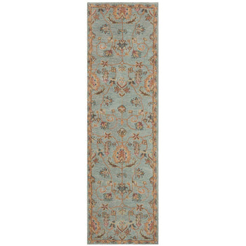 Introducing our exquisite hand-tufted runner rug, a true masterpiece crafted with meticulous attention to detail in the enchanting shades of light blue and a delightful array of multi-color accents. Measuring a versatile 2'-3" x 8', this runner is an elegant solution for your hallway, entryway, or any long, narrow space in need of a touch of sophistication.