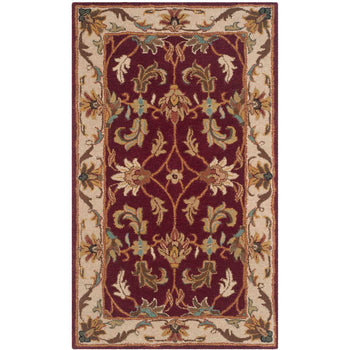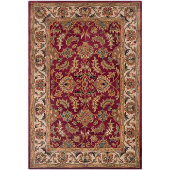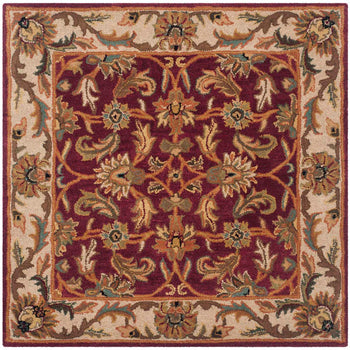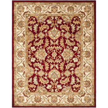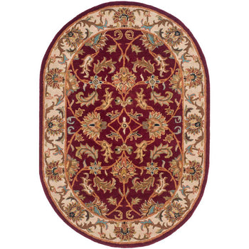 Featuring a striking pattern, our round rug is adorned with intricate floral motifs and sophisticated scrollwork in a rich red and ivory color palette. This stunning design is a celebration of classic aesthetics, perfectly suited for those who appreciate time-honored styles that transcend trends.