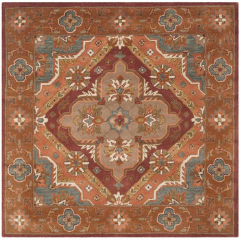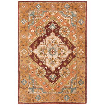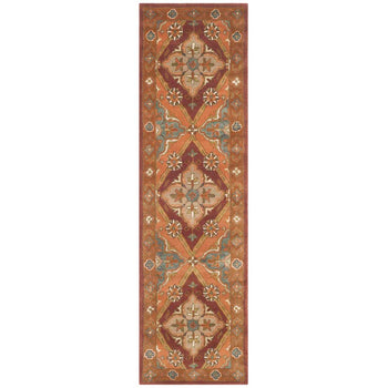 The rug's striking rust hue is the perfect anchor for its intricate pattern, which features traditional motifs in a symphony of complementary colors. This design exudes an elegant, old-world charm that can uplift modern and classical interiors alike.