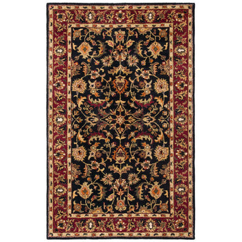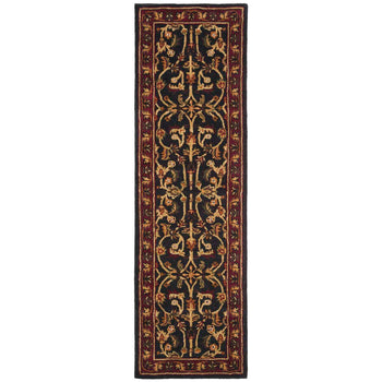 Elevate your home with the luxurious touch of our Hand Tufted Wool Runner Rug! Crafted by skilled artisans in India, this stunning runner measures 2'-3" X 8' and boasts a plush height of 3/8". The rich and bold color palette of BLACK / RED is perfectly highlighted in the intricately detailed traditional pattern, which exudes a timeless elegance that will complement any hallway or narrow space.