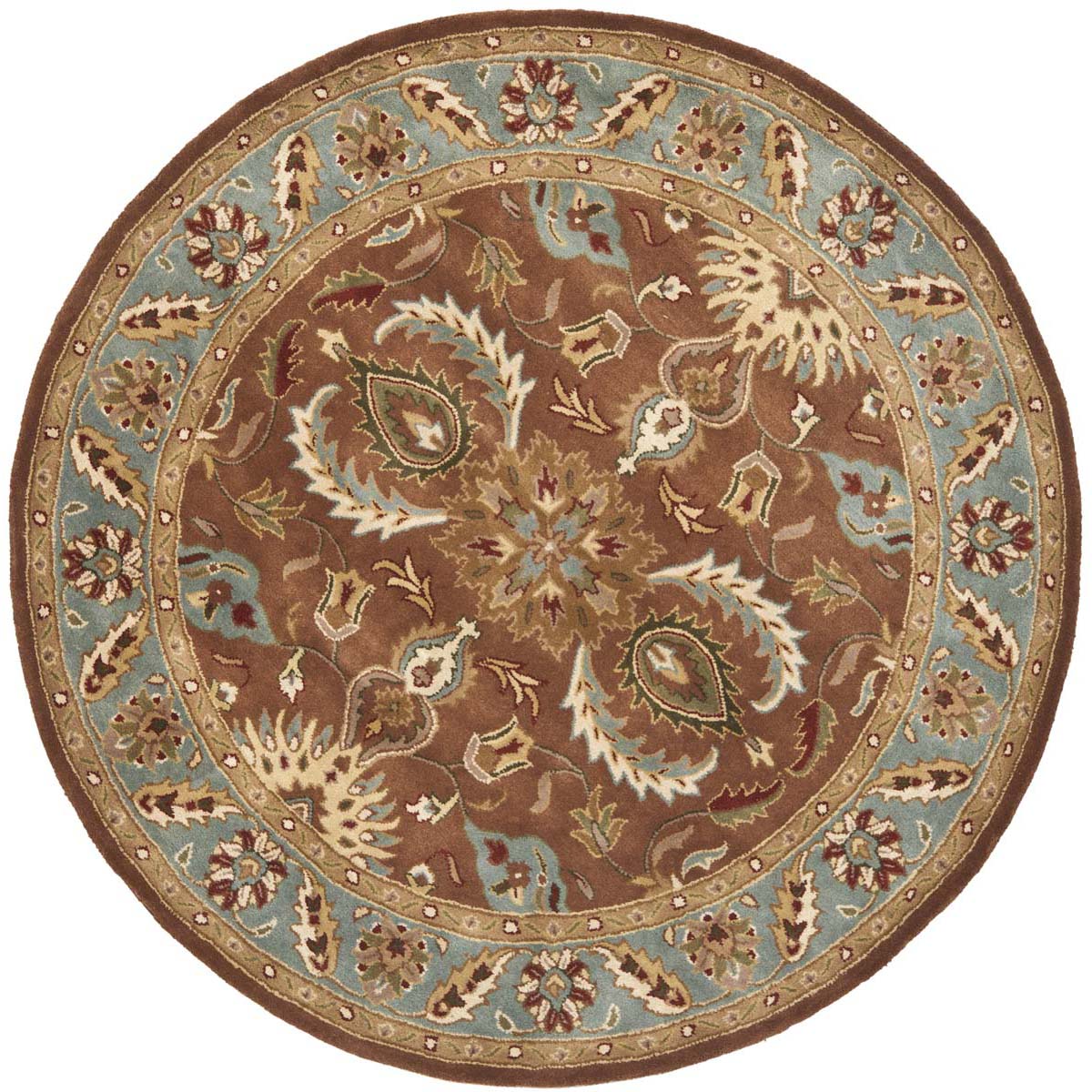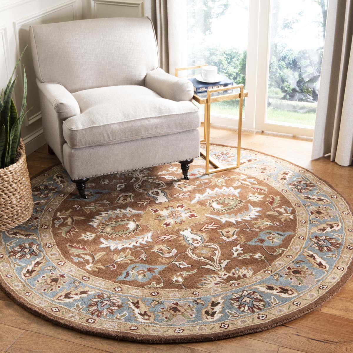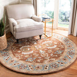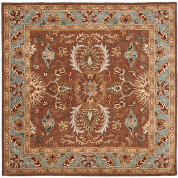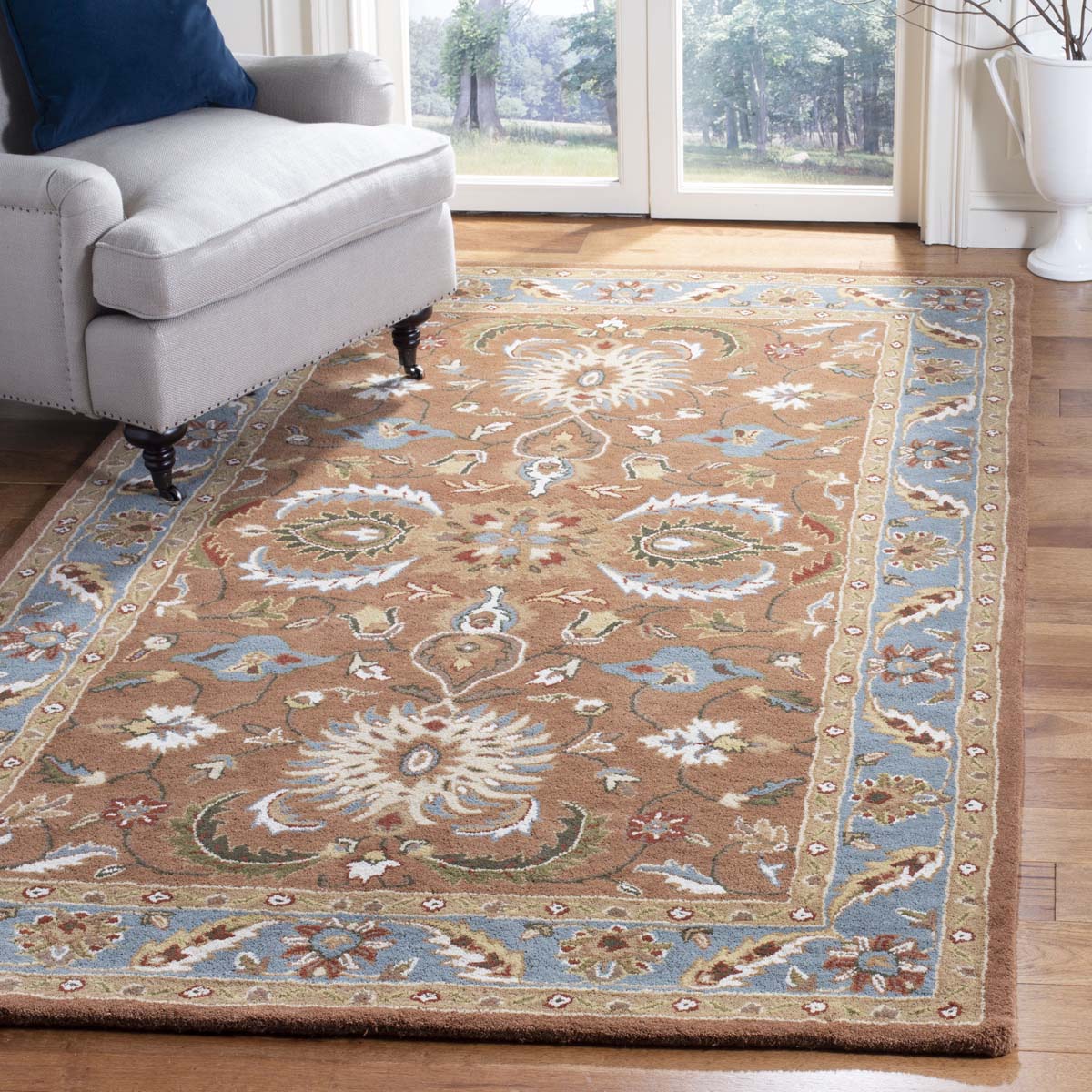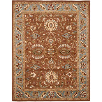 Boasting a rich palette of deep brown contrasted with serene blues, the runner's design draws inspiration from classical motifs. Intricate floral and vine patterns dance across the surface, surrounded by a refined border that echoes the rug's central theme, creating a sense of harmony and sophistication.