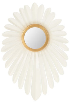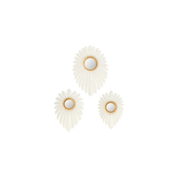 Add sophisticated drama to your walls with Hermia wall decor. Resembling an abstract leaf facing downwards, our wall decor impresses with its artisanal texture. The metallic decor features delicate folds, fanning in and out to create a sense of movement. Completed with a mirror in the center, it serves as a charming and eye-catching design feature. Our wall decor is available in both white and gold to add depth and character to your bare walls.