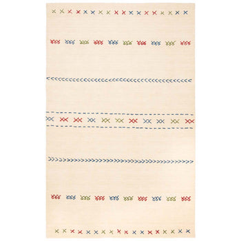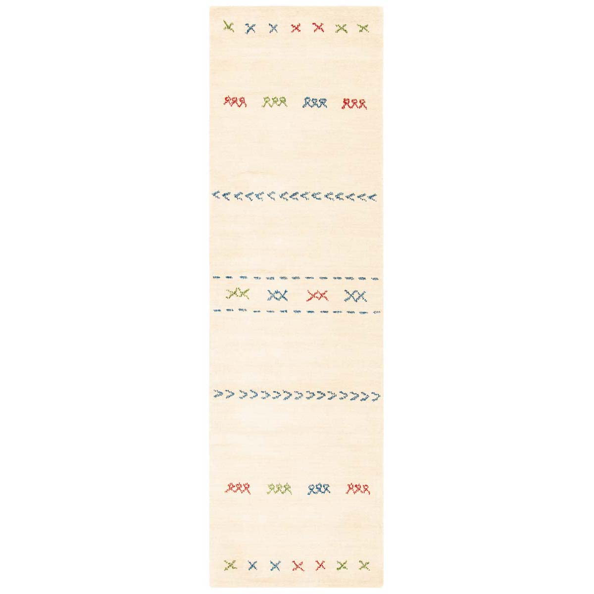 Our contemporary style runner boasts a serene cream base, providing a versatile and neutral backdrop that seamlessly integrates with any color scheme. Adorning this creamy canvas is a delightful pattern featuring rows of stylized motifs in a harmonious blend of colors that add a playful yet refined touch to the piece.