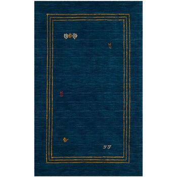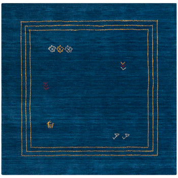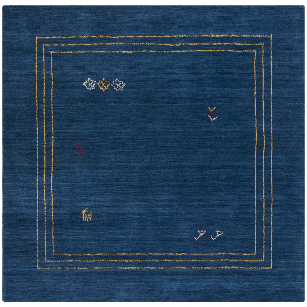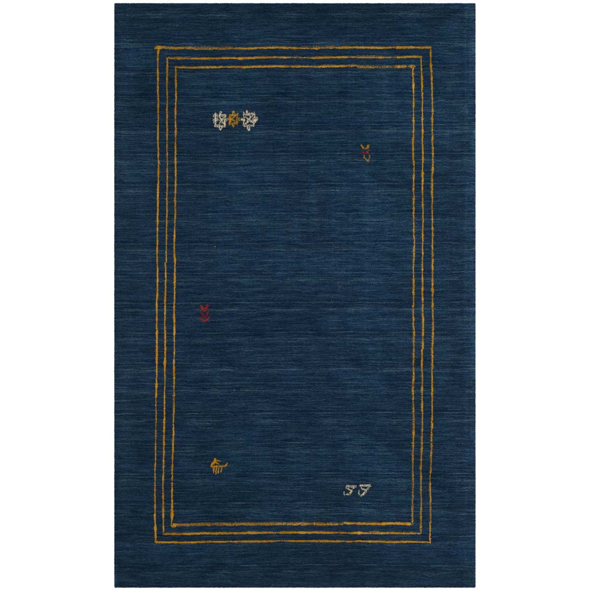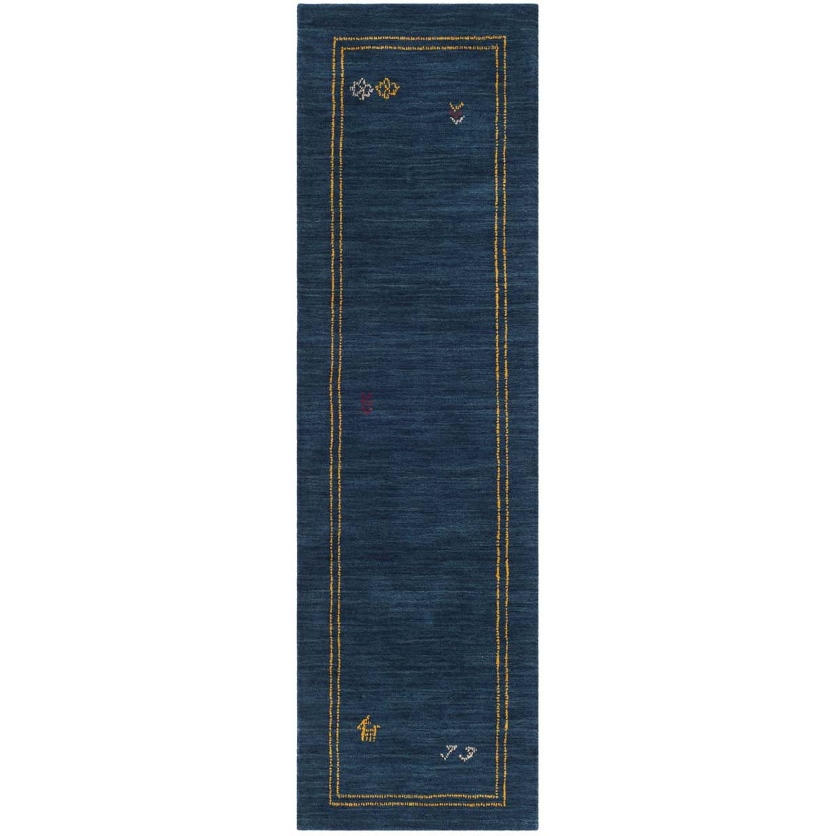 Crafted with care in India, this rug is made of premium wool, ensuring both durability and comfort. The deep blue hue serves as a canvas for the vibrant multi-colored accents that adorn its border, capturing attention and adding an understated elegance to any room.