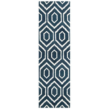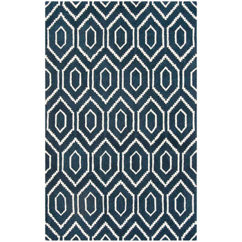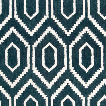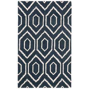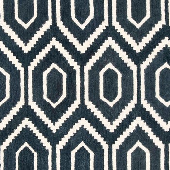 Featuring a mesmerizing geometric pattern that captures the eye, the interplay of navy and ivory hues breathes sophistication into any room. The balanced use of color creates a harmonious design that will complement both traditional and contemporary interiors, making this rug a versatile addition to your d?cor.