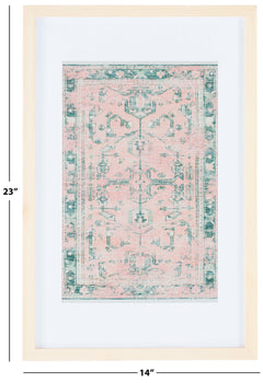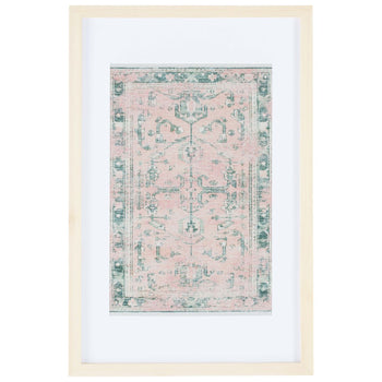 Soothe and soften your walls with the exceptional artistry and textures of our Historia framed textile wall art. The rhythmic and flowing motifs of the wall art receive a timeless distress effect. Enriched in a soothing combo of green and pink, our textile all art serves as a stunning and charming focal point for any room. It is elegantly encased in a wooden frame to bring texture, dimension, and soothing touch of luxury to your bare walls.