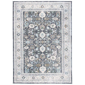 The rug's pattern reveals a classic and timeless traditional style that exudes sophistication, featuring intricate designs and a harmonious blend of floral motifs and ornamental accents set against a beautiful grey backdrop. The serene light and dark grey color palette are versatile and effortlessly complement a wide range of interior decors, adding a touch of grace and refinement to your space.