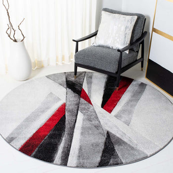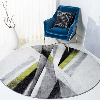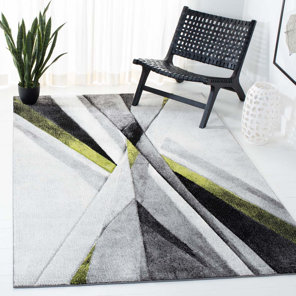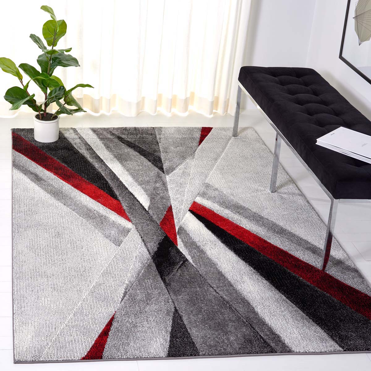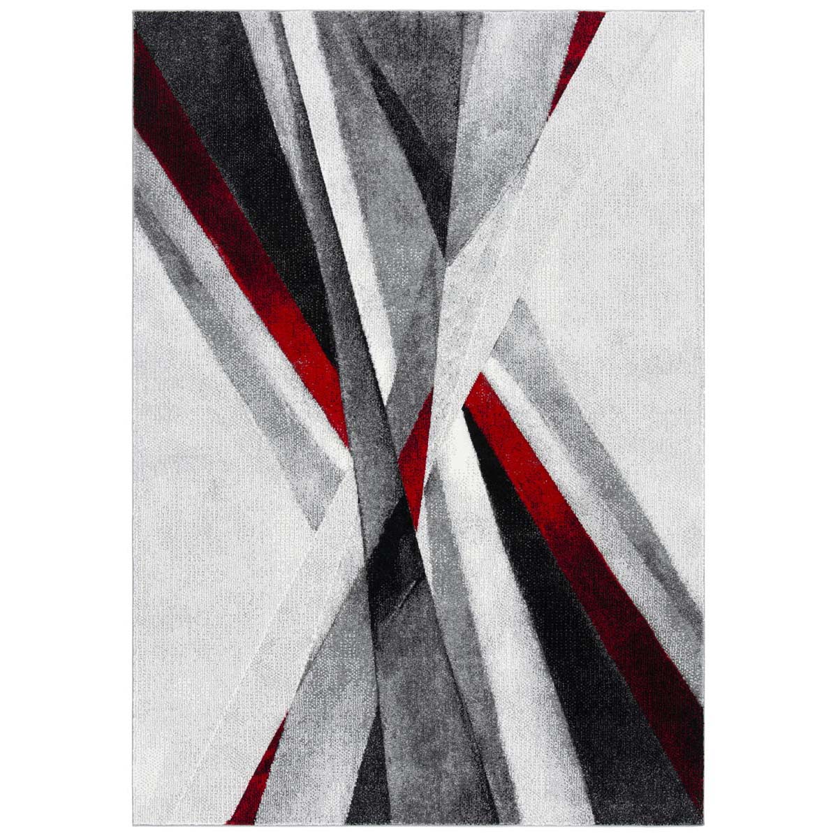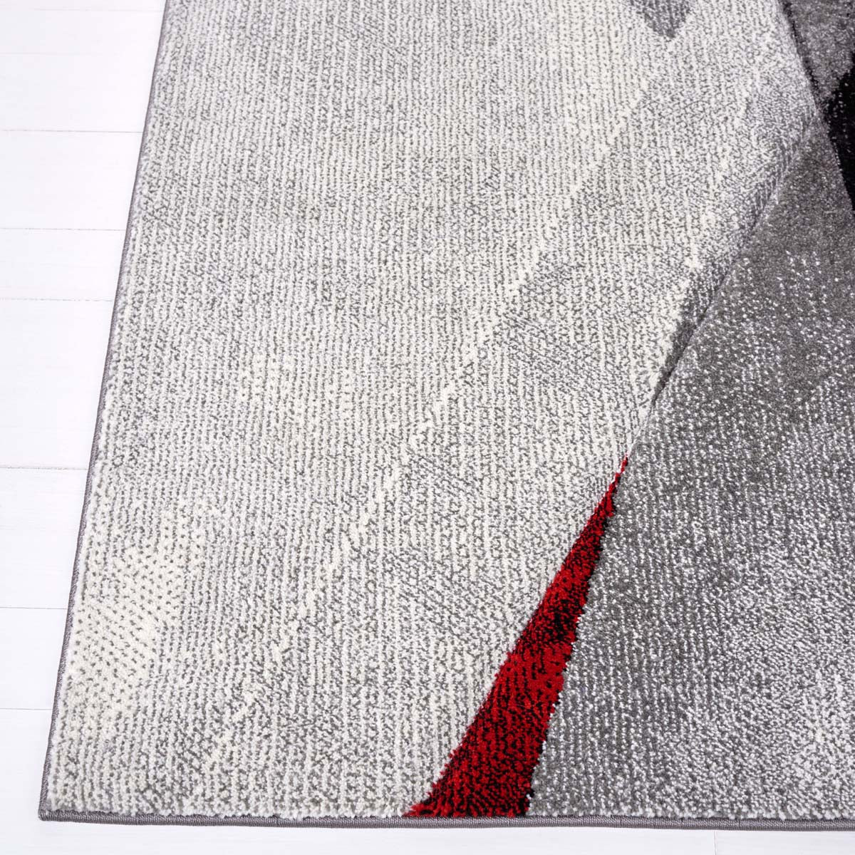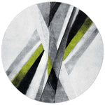 The intricate design, captured in hues of sophisticated grey with bold teal accents, adds a touch of artistic flair to your home decor. The dynamic angular lines create a sense of movement, bringing an energetic yet refined look to your favorite room. The pile height of a comfortable 5/8" makes for a soft underfoot experience while accentuating the sharpness of the pattern.