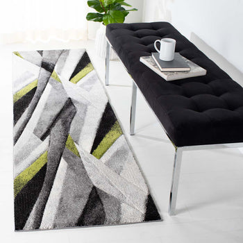 Introducing our exquisite Contemporary Accent Rug ? a symphony of modern sophistication in a compact 2'-3" X 4' size, designed to elevate any space with its striking geometric pattern. Crafted with precision on a Power Loomed construction, this area rug boasts a durable Polypropylene material, ensuring not only style but also long-lasting quality.
