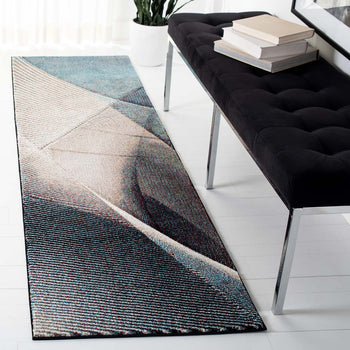 Rich in texture and style, the rug displays a striking abstract pattern that is a harmonious blend of beige and blue hues, creating a visual masterpiece that effortlessly complements your modern decor. The polypropylene fibers promise easy maintenance and resilience against everyday wear, making it an ideal choice for high-traffic areas.