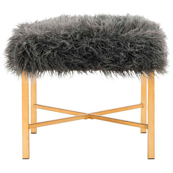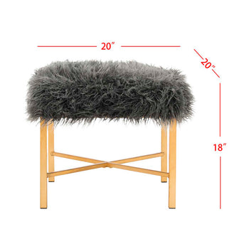 The Faux Sheepskin X Square Bench was designed for the modern taste maker. Enveloped in a rich gold foil finish and grey faux curly sheepskin, its classic style makes it ideal for seating in the living room, bedroom or a powder room in need of instant ?lan.